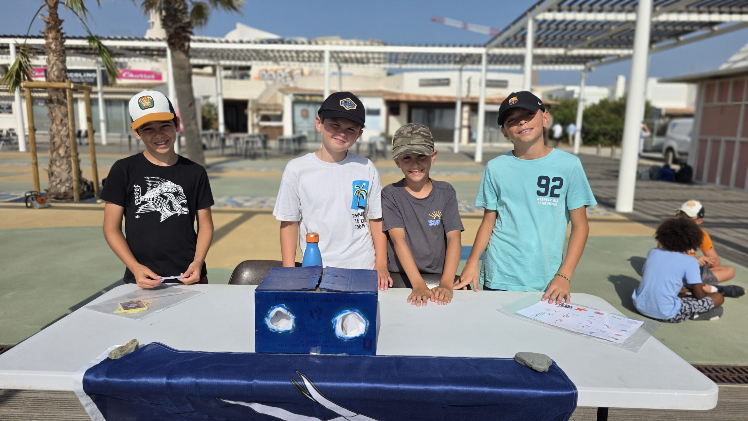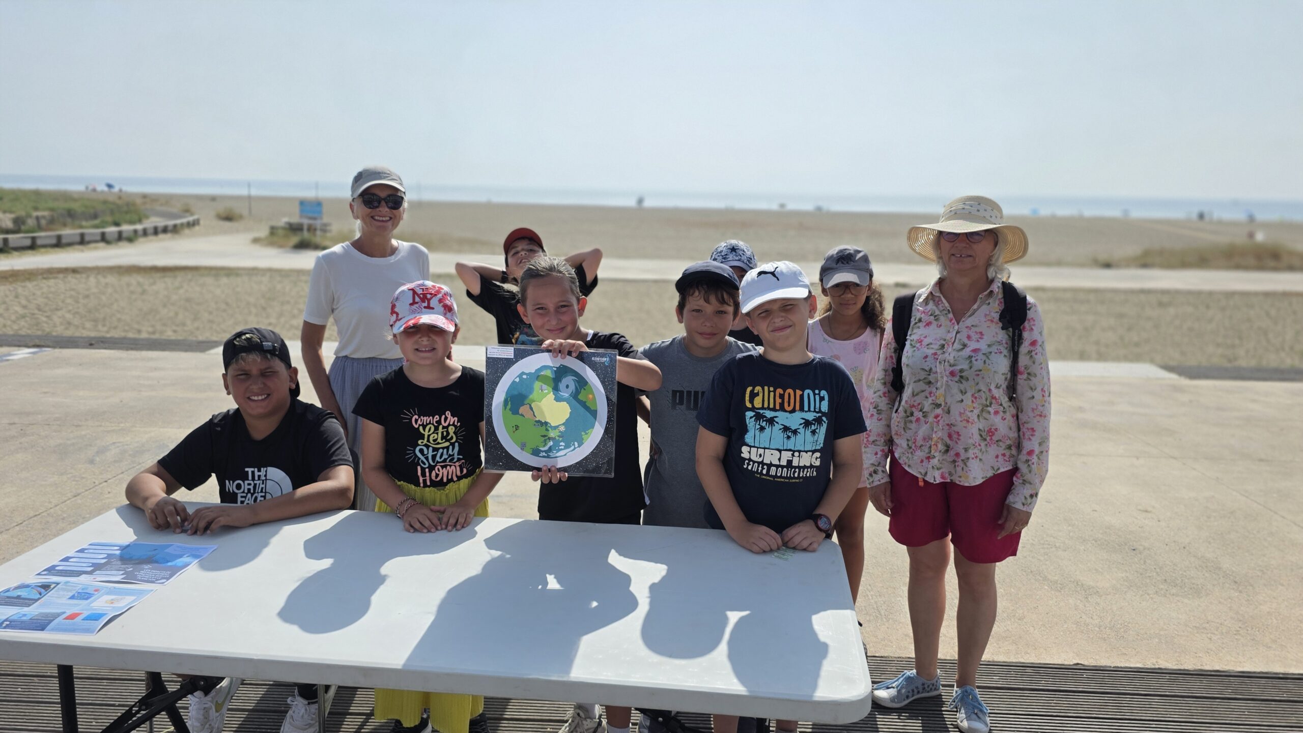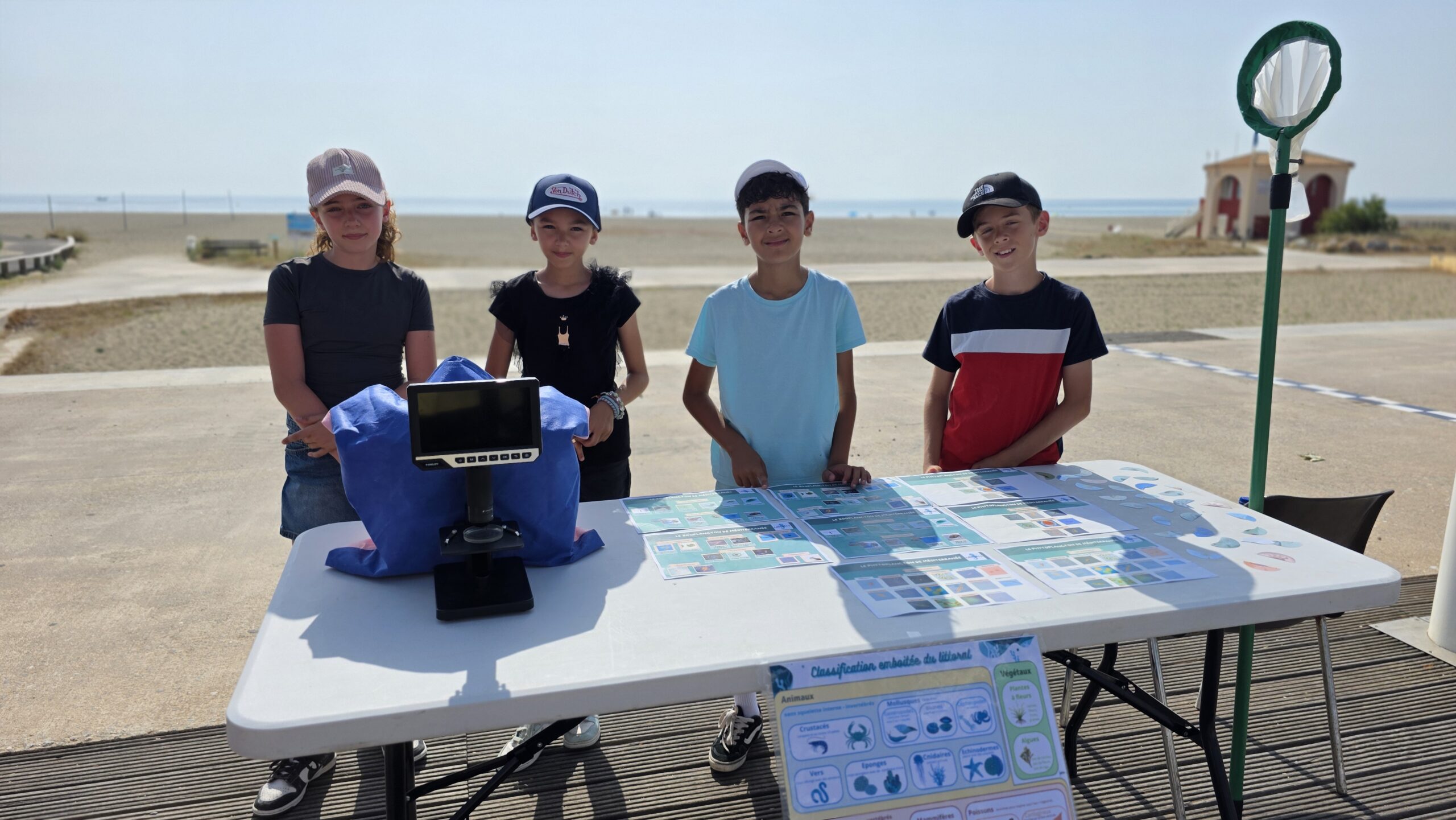 👉 À Leucate, les élèves ont mené un travail passionnant autour de la laisse de mer, en s’impliquant dans des démarches de sciences participatives et en partageant leurs découvertes sur la biodiversité locale. Ils ont d’ailleurs tenu à ce que le pupitre soit placé tout proche du club de plage pour enfants à Leucate Plage.
