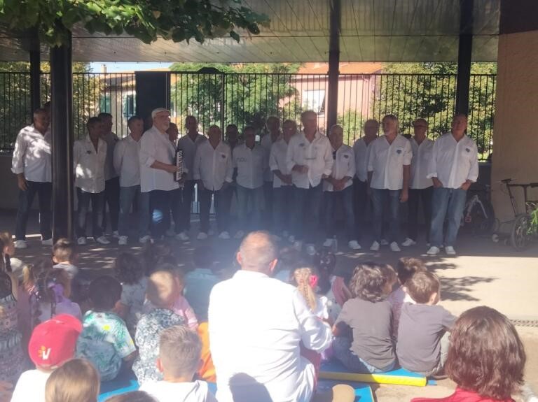 Le Coeur des hommes, ensemble choral de Portel est venu chanter dans la matinée pour les enfants du primaire de Leucate dans le cadre d’un projet pédagogique prévu autour de la musique jazz par l’école.