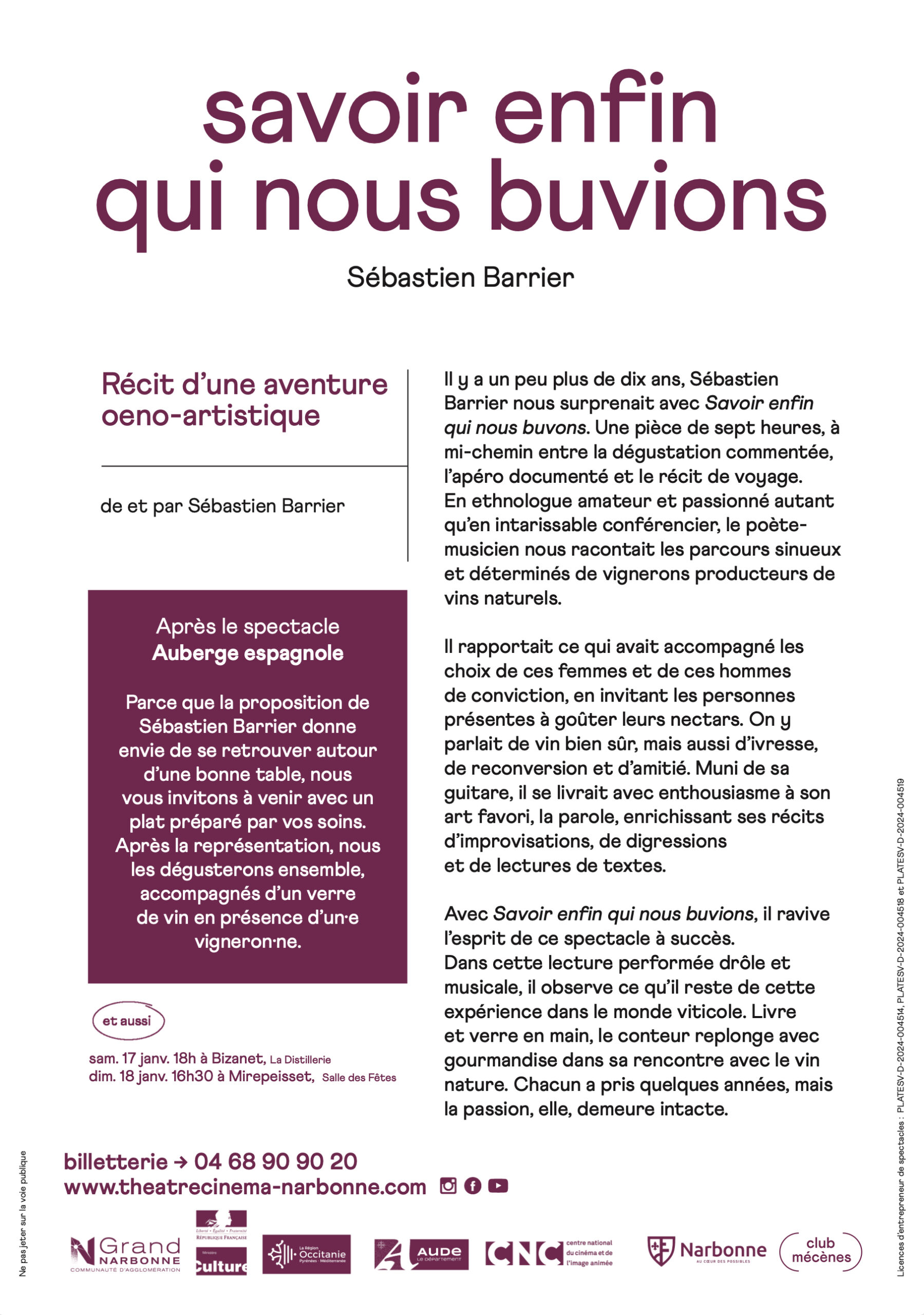 vous voudrez bien partager. Des vignerons accompagneront les agapes, avant, à l’entracte et après