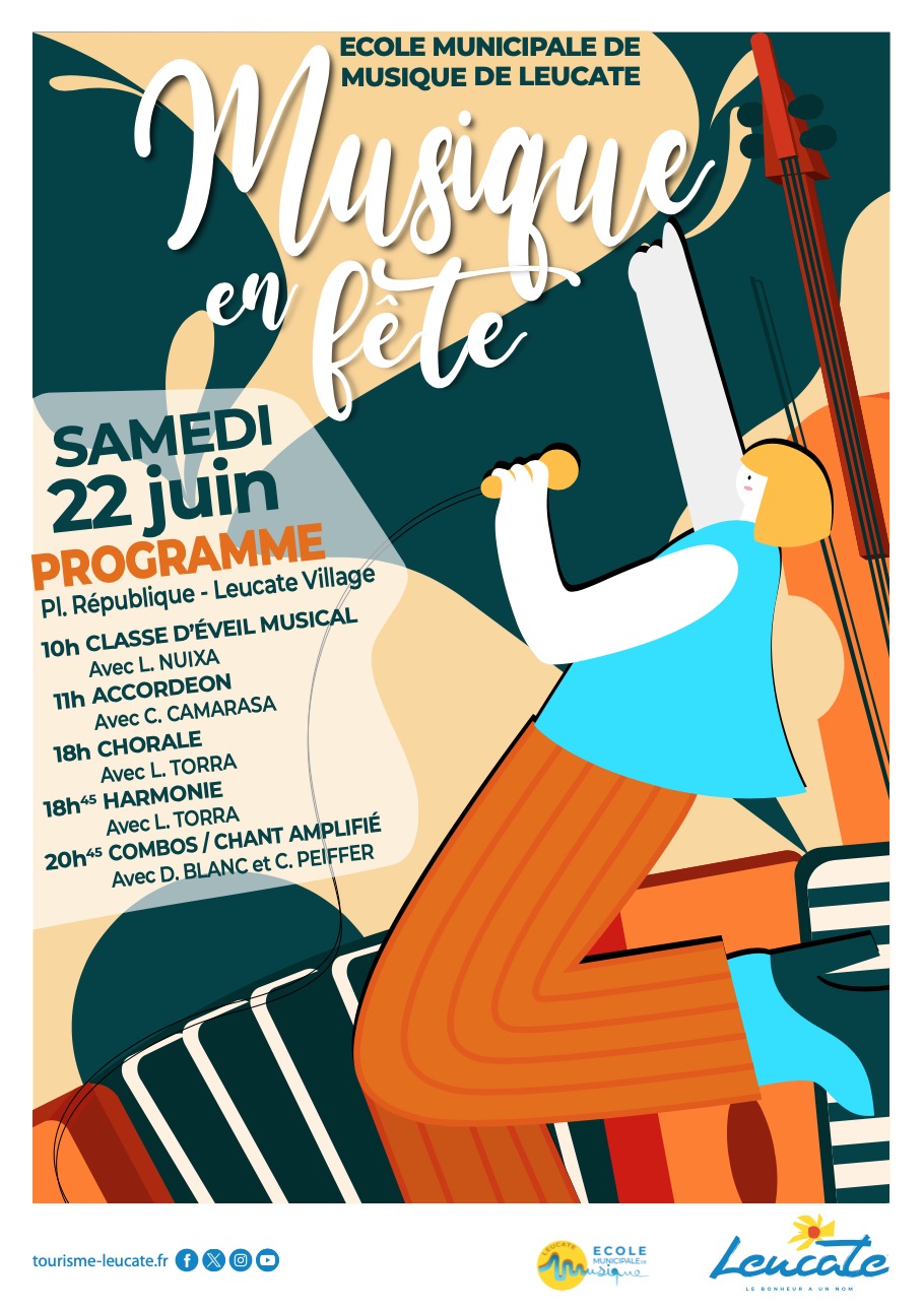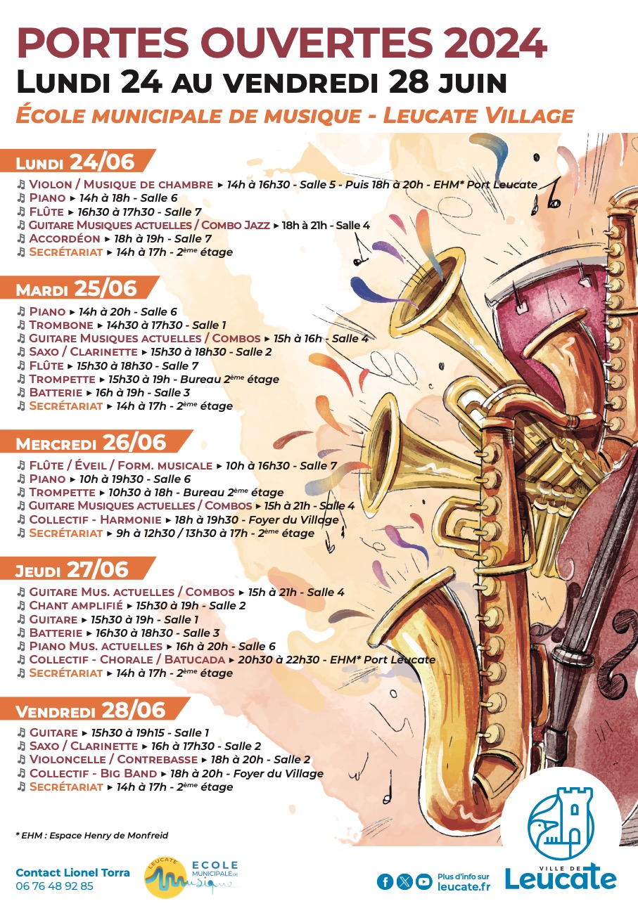 Profitez d'une belle journée pour voir la vie en musique avec l'école municipale de musique de Leucate et les prestations de ses différentes classes tout au long de la journée !