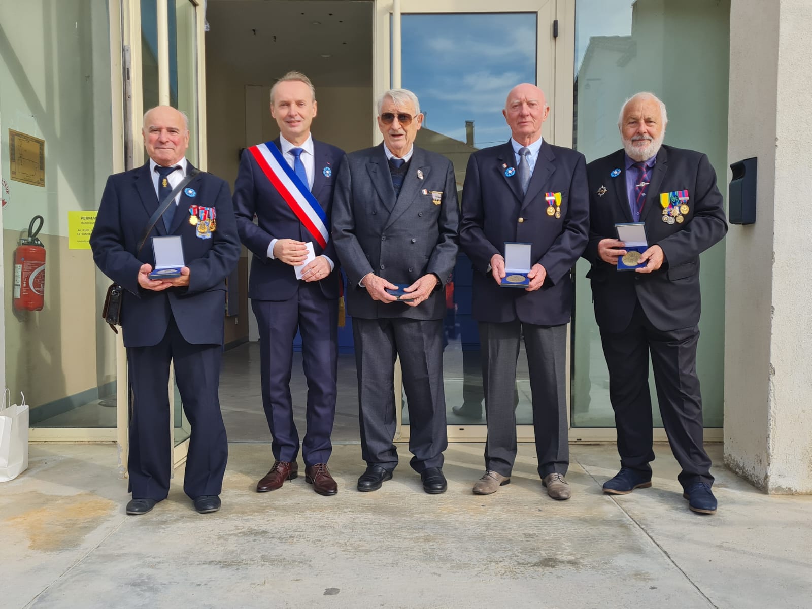 Michel PY a clôturé ces cérémonies en remettant, pour services rendus au milieu associatif patriotique, la médaille des arts de la culture et de la vie associative Leucatoise à Victor BAILLETTE, Françis BENS, Didier LEBLOND et André QUERCY (chef de musique de l’Harmonie Réveil Sigeannais).