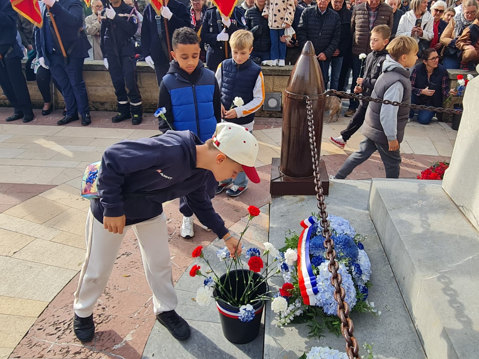 À Leucate Village, les élèves des groupes scolaires ont déposé un œillet en mémoire de chaque soldat Mort pour la France.